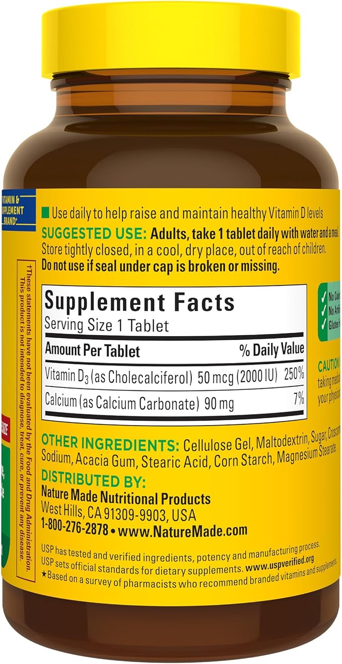 - Nature Made Vitamin D 2000 IU tablets support bone health, teeth health, muscle health, and provide immune support