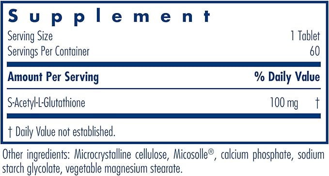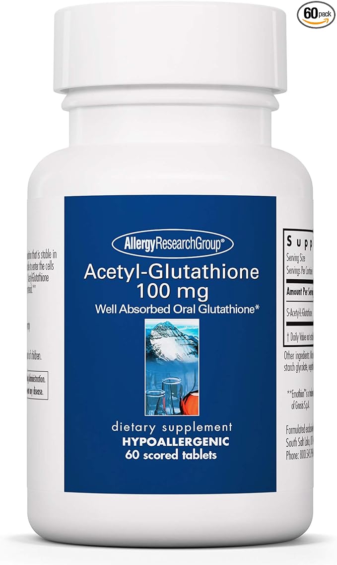 Allergy Research Group Acetyl-Glutathione - S-Acetyl-L-Glutathione, Well Absorbed Oral Immune Support, 100 mg Supplement, Hypoallergenic, Scored Tablets - 60 Count