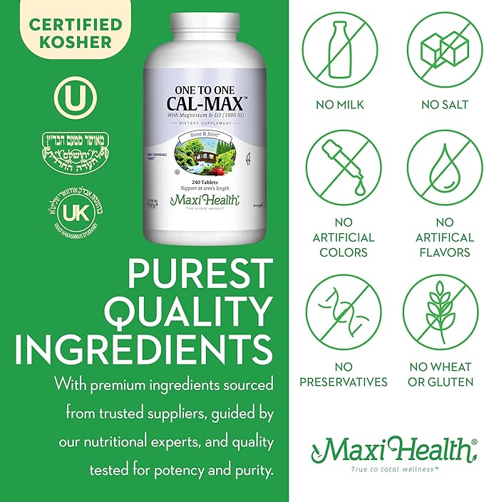 - ONE TO ONE CAL MAX - This calcium based supplement contains an equal 1:1 ratio of magnesium plus a generous helping of vitamin D3. Highly bioavailable in easy to swallow tablets. Replenish depleted calcium levels faster with the help of Maxi Health.