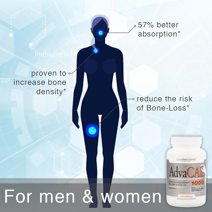 Lane Innovative - AdvaCAL 1000, Advanced Calcium Supplement, Easy to Swallow Extra Small Capsule, Supports Increased Bone Density (50 Servings)