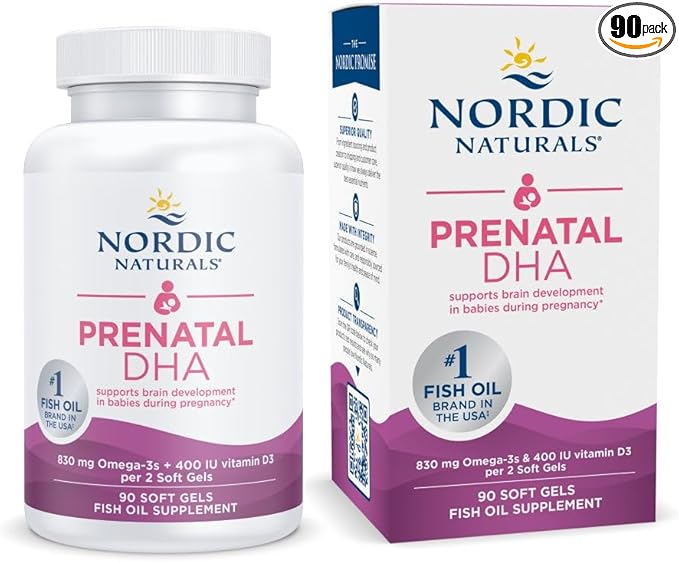 Nordic Naturals Prenatal DHA, Unflavored - 90 Soft Gels - 830 mg Omega-3 + 400 IU Vitamin D3 - Supports Brain Development in Babies During Pregnancy & Lactation - Non-GMO - 45 Servings
