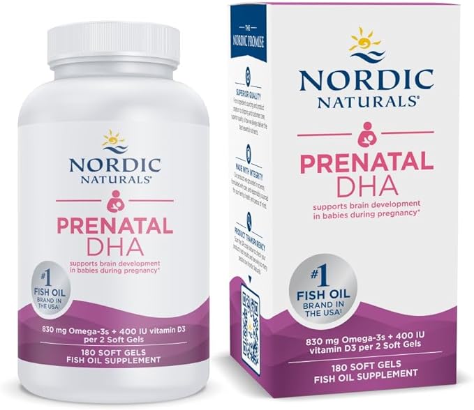 Nordic Naturals Prenatal DHA, Unflavored - 180 Soft Gels - 830 mg Omega-3 + 400 IU Vitamin D3 - Supports Brain Development in Babies During Pregnancy & Lactation - Non-GMO - 90 Servings