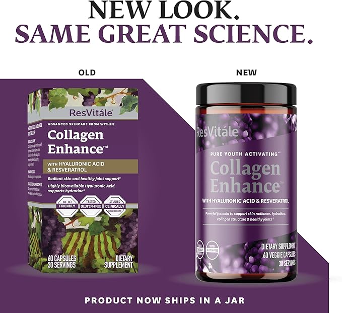 ResVitále Collagen Enhance - Beauty Supplement with Hyaluronic Acid & Resveratrol - 60 Capsules