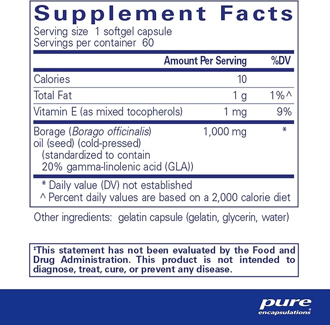 Pure Encapsulations Borage Oil | Hypoallergenic Dietary Supplement | 60 Softgel Capsules