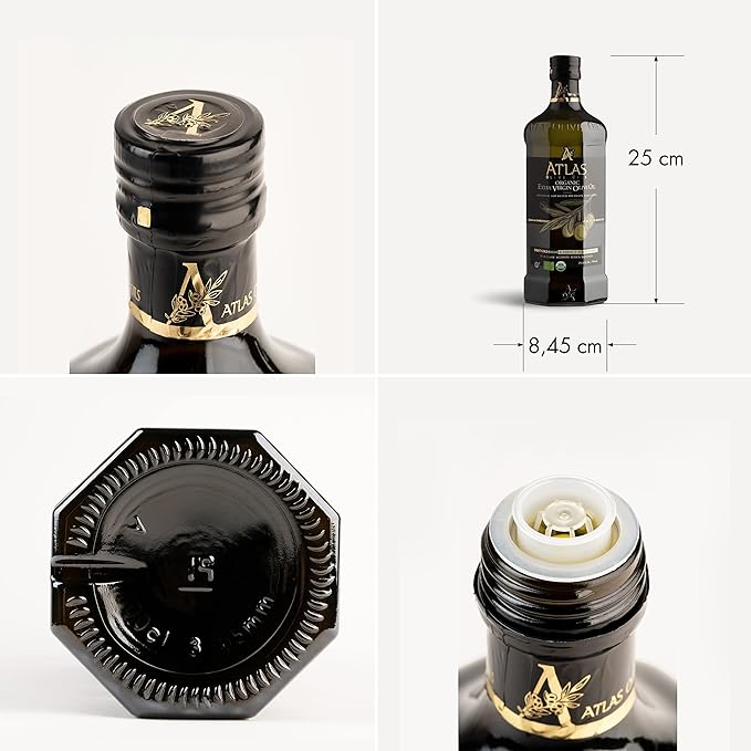 Atlas 750 mL Organic Cold Press Extra Virgin Olive Oil in Glass Bottle, Polyphenol Rich from Morocco | Newly Harvested Unprocessed from One Single Family Farm | Moroccan EVOO Trusted by Award-Winning Chefs