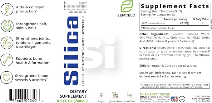 - QUICK ABSORPTION - An advanced aqueous form of Silica in clear solution for quicker absorption than tablets or capsules which must first dissolve in the digestive system before being absorbed.