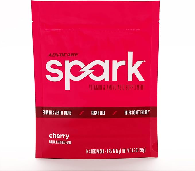 AdvoCare Spark Vitamin & Amino Acid Supplement - Focus & Energy Drink Powder Mix with Vitamin A, B-6, C & E - Also Includes L-Carnitine & L-Tyrosine - Cherry, 14 Stick Packs