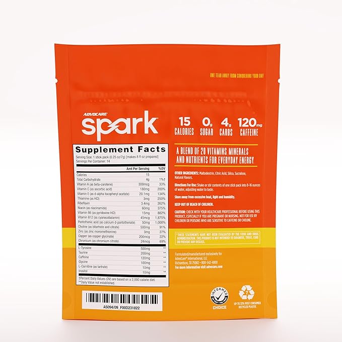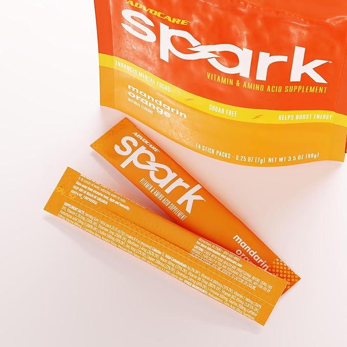 AdvoCare Spark Vitamin & Amino Acid Supplement - Focus & Energy Drink Powder Mix with Vitamin A, B-6, C & E - Also Includes L-Carnitine & L-Tyrosine - Mandarin Orange, 14 Stick Packs