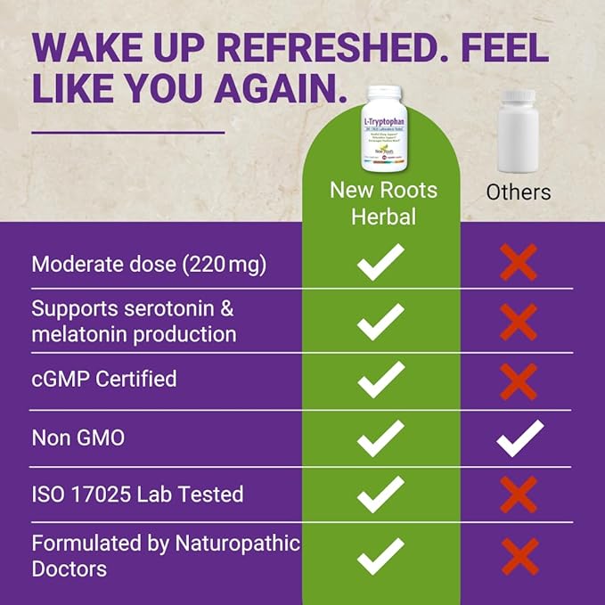 NEW ROOTS HERBAL L-Tryptophan Supplement for Sleep (90 Capsules) 220mg, Herbal Supplement for Healthy Sleep, Mood and Stress Response Support – Gluten-Free, Non-GMO