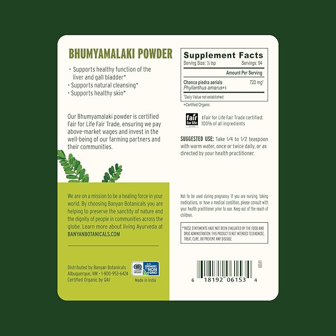 Banyan Botanicals Bhumyamalaki Powder – Organic Bhumyamalaki (Phyllanthus spp.) Herb Powder – Bitter & Cooling – Natural Ayurvedic Liver Detox* – 3 oz – Non-GMO Sustainably Sourced Vegan