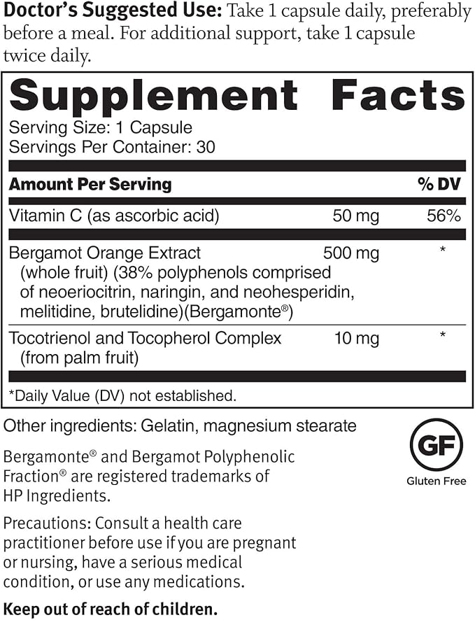 - THIS POWERFUL FORMULA FEATURES A BREAKTHROUGH INGREDIENT CALLED BERGAMONTE, an extract of the citrus bergamot orange that promotes healthy cholesterol levels by boostingand HDL “good” cholesterol while supporting normal LDL and triglycerides.