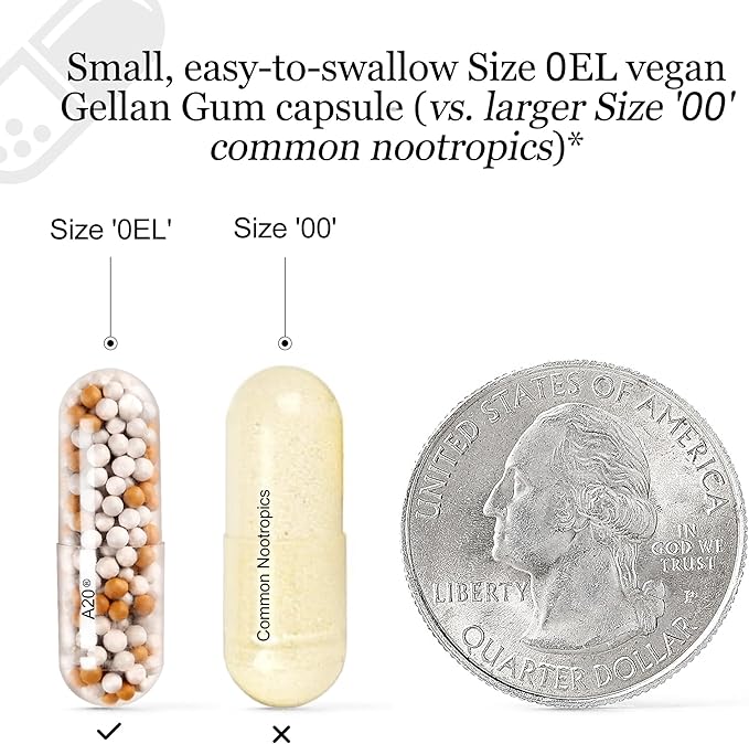 HCF A20 Microbead Brain Health Supplements for Adults for Memory, Focus, Calm, Mood, Alertness, Attention, Vision, Sleep, Immune System, 20 Premium Nootropic Nutrients Multivitamin & 7 Advances® Tech