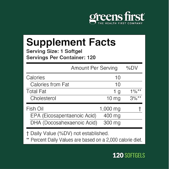 Greens First Omega-3 Optimize Daily Supplement – Ultra-Pure, Potent Marine Oil - for Heart, Brain & Joint Health - High EPA/DHA - Immune Support - 850mg (120 Softgels)