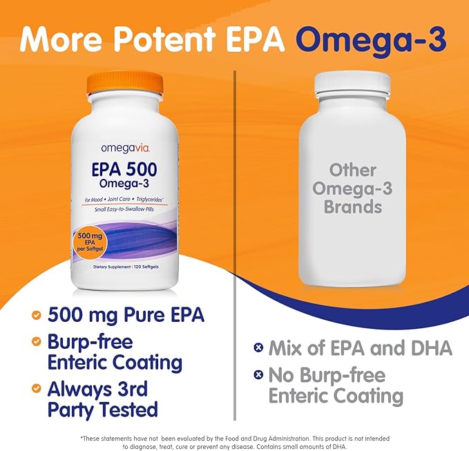 - With a highly concentrated, EPA fish oil formula, this 500 mg EPA supplement supports joint health, helps to promote healthy mood, and it works in conjunction with diet and exercise to manage triglyceride levels