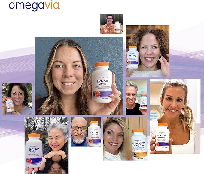 OmegaVia EPA 500, Purified Omega-3 Fish Oil Supplement, 500 mg EPA in Triglyceride Form, Burpless Fish Oil, Non-GMO, Gluten-Free, IFOS 5-Star, 120 Softgels