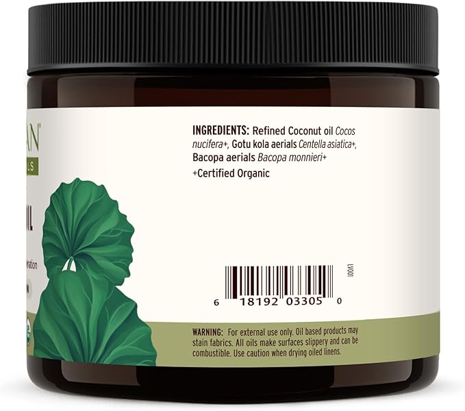 Banyan Botanicals Brahmi Oil in Coconut Base – Organic Ayurvedic Massage Oil with Gotu Kola and Bacopa – Calming Massage Oil for Focus & Relaxation – 14.5 oz NonGMO Sustainably Sourced Abhyanga Oil