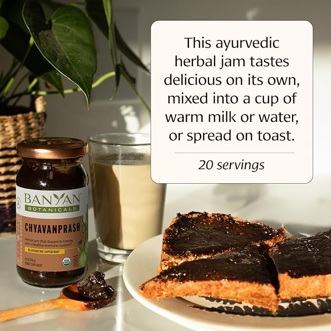 Banyan Botanicals Chyavanprash – Organic Ayurvedic Herbal Jam with Raw Honey, Amla & Ashwagandha – Vitalizing Superfood Immune Support Supplement* – 9.4 oz – Non GMO Sustainably Sourced Gluten Free