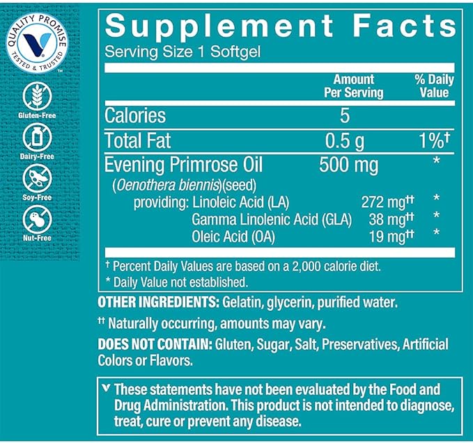 The Vitamin Shoppe Evening Primrose Oil 500MG, Natural Source of GLA (Gammia Linolenic Acid), Supplement for Women's Health & Hormonal Balance (120 Softgels)
