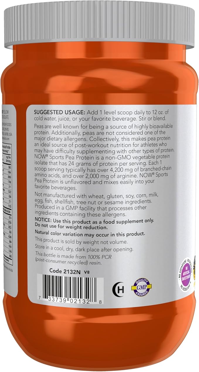 NOW Foods Sports Nutrition, Pea Protein 24 g, Easily Digested, Unflavored Powder, 12-Ounce
