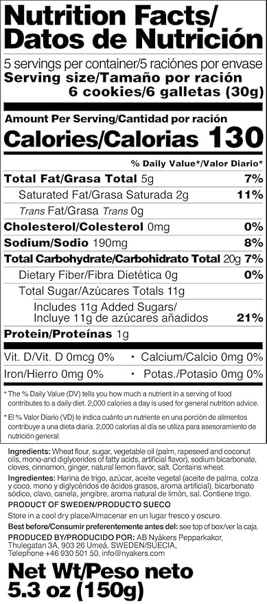 Nyakers Swedish Lemon Ginger Snaps | Nyakers Ginger Snaps Lemon Flavor | Box, 150g