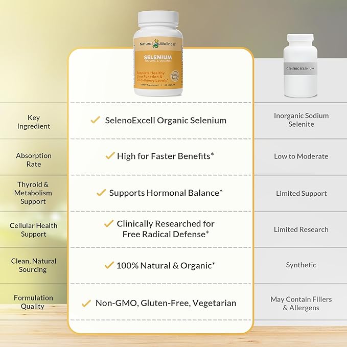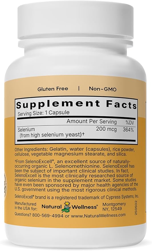 Natural Wellness Organic Selenium 200 mcg – SelenoExcell for Antioxidant, Thyroid, and Metabolism Support – 60 Capsules, 60-Day Supply