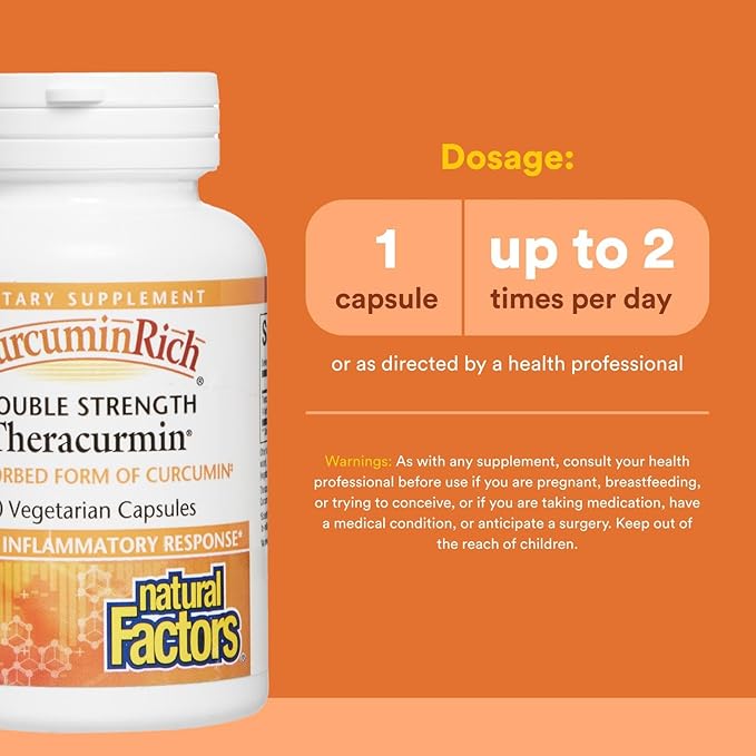 Natural Factors, CurcuminRich Double Strength Theracurmin, 60 mg, Just 1 Capsule Daily, Formulated for Superior Absorption, 60 Count (Pack of 1)