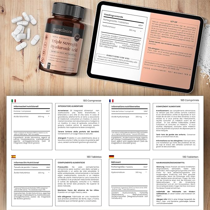 - ๐ช Triple Strength Formula โ 300mg Per Tablet Packed with a powerful 300mg of premium Hyaluronic Acid (as Sodium Hyaluronate) per tablet โ more than 3x the standard dose โ for superior joint, skin, and tissue support.