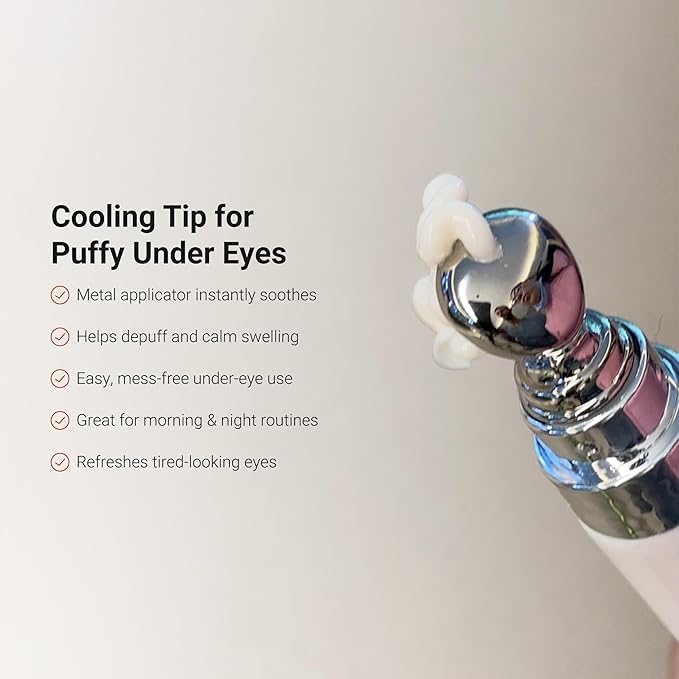 - Cooling Metal Applicator - Instantly soothes and depuffs under eyes while delivering precise application. Helps reduce swelling and tired-eye appearance with every use.