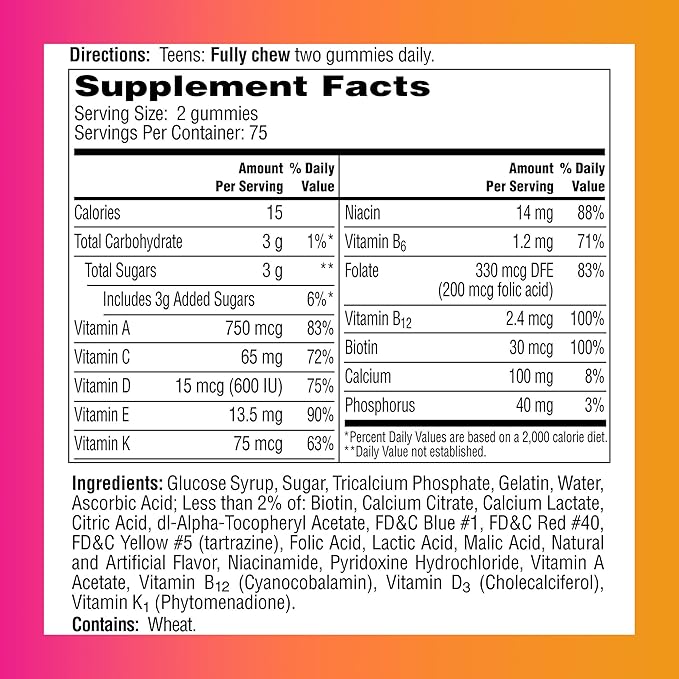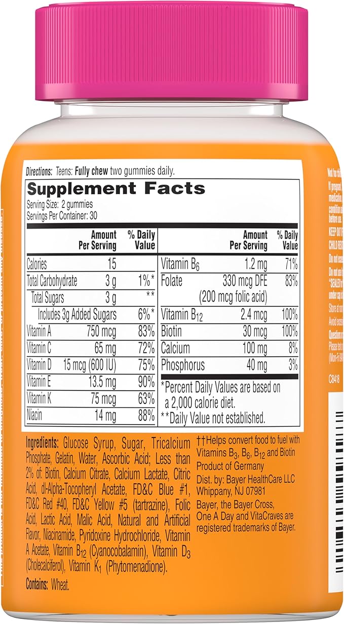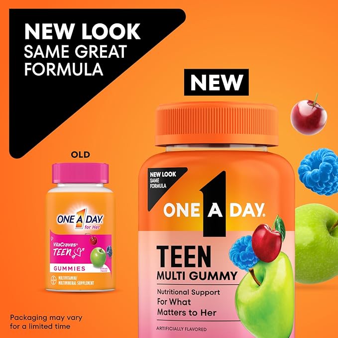 One A Day Teen for Her Multivitamin Gummies, Gummy Multivitamins with Vitamin A, C, D, E and Zinc for Immune Health Support, Physical Energy & more, 60 Count