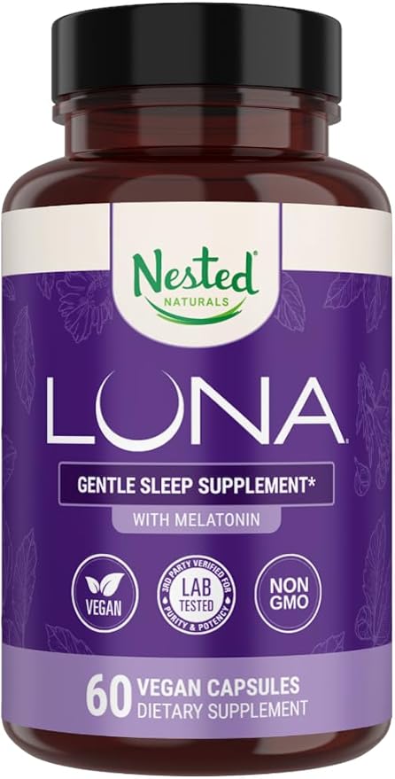 Nested Naturals Luna Sleep Aid - Non-Habit Forming Natural Sleeping Pills for Adults with Naturally Sourced Ingredients - Valerian Root, Melatonin, Chamomile, Lemon Balm, and More - 60 Vegan Capsules