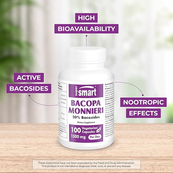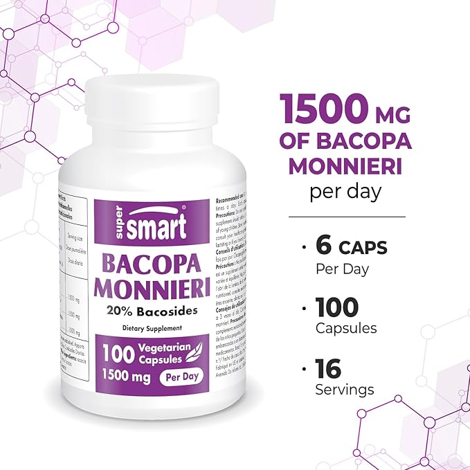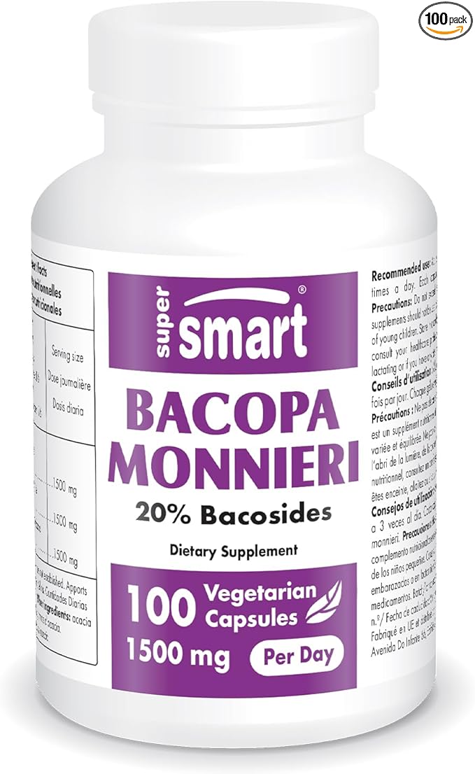 Supersmart - Bacopa Monnieri 1500 mg Per Day - Nootropic Supplement & Brain Boost - Help Improve Learning, Memory & Information Processing | Non-GMO & Gluten Free - 100 Vegetarian Capsules