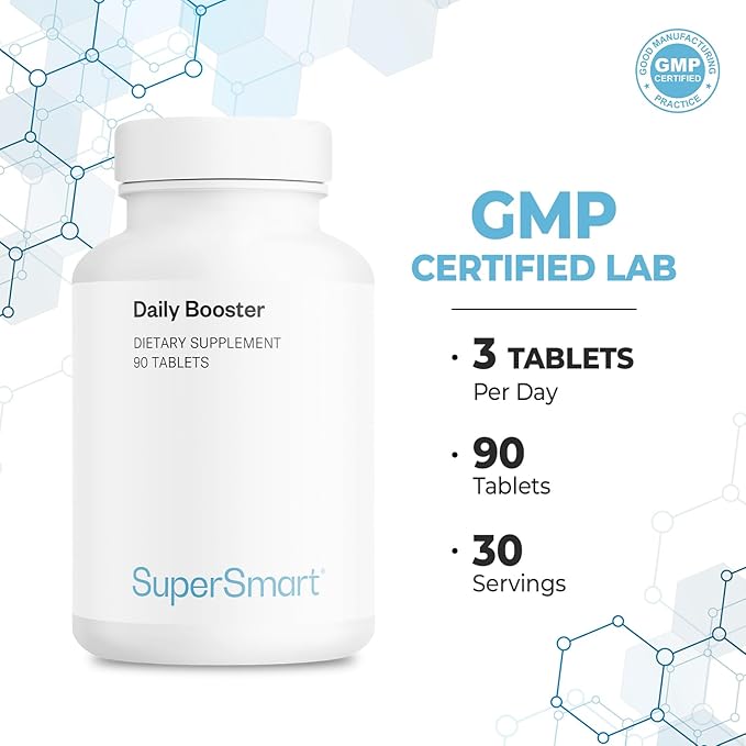 SUPERSMART - Daily Booster - with PQQ, Acetyl L-Carnitine & R-Lipoic Acid - Boost Your Daily Multivitamin Supplement | Non-GMO & Gluten Free - 90 Tablets
