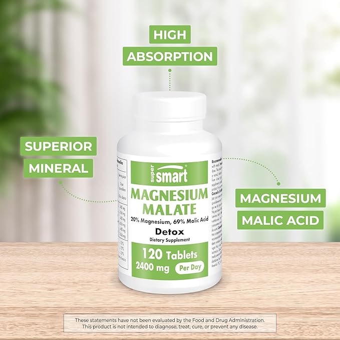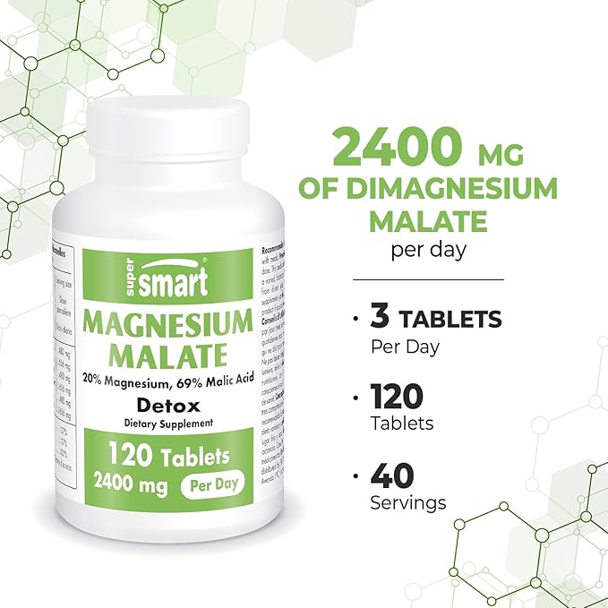 SuperSmart - Magnesium Malate 2400mg per Day (Highly Bioavailable) - Superior Mineral - Magnesium Malic Acid Supplement | Non-GMO & Gluten Free - 120 Tablets