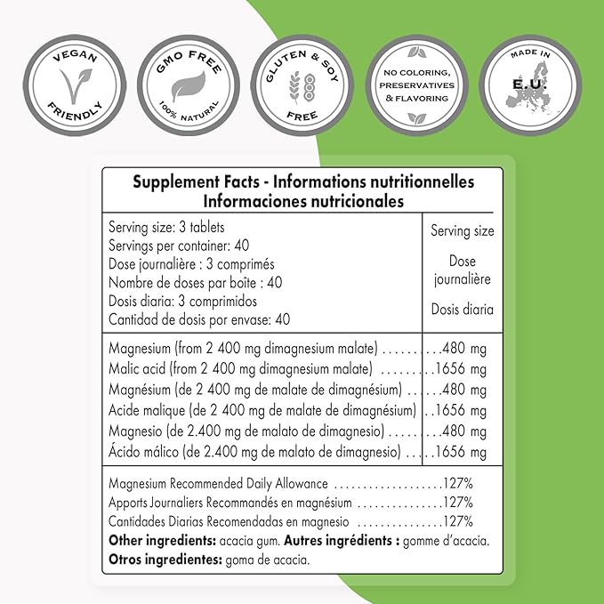 - MAGNESIUM MALATE SUPPLEMENT - Experience the remarkable benefits of Magnesium Malate supplement designed to deliver the utmost in magnesium availability and solubility.