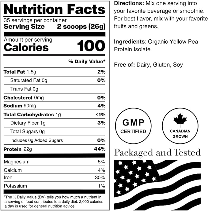 - PURE INGREDIENTS: Contains only Organic Yellow Pea Protein Isolate; no fillers or additives.