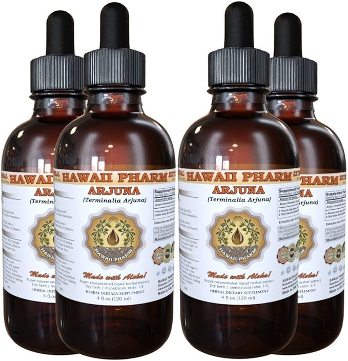 Arjuna Liquid Extract, Organic Arjuna (Terminalia Arjuna) Dried Bark Powder Tincture Herbal Supplement 4x4 oz