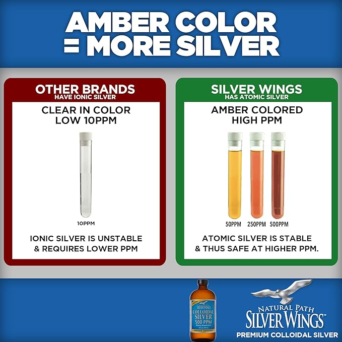 - SAFE & SUPERIOR ABSORPTION: Unparalleled small silver particle size (1-3 nanometers). Made from naturally occurring silver with a true amber color which is gluten free and NON-GMO earning the esteemed Parents’ Picks award for "Best Family Health & Safety Product" and the Mom’s Choice Award for "Best in Family-Friendly Products."