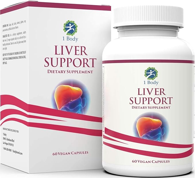1 Body Liver Support Supplement – Liver Cleanse, Detox & Support with Milk Thistle, Dandelion Root & Artichoke Extract, Natural Liver Health Formula, Non-GMO, Vegan, 60 Capsules