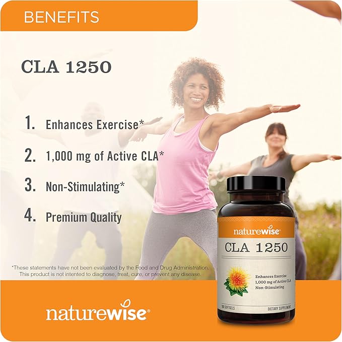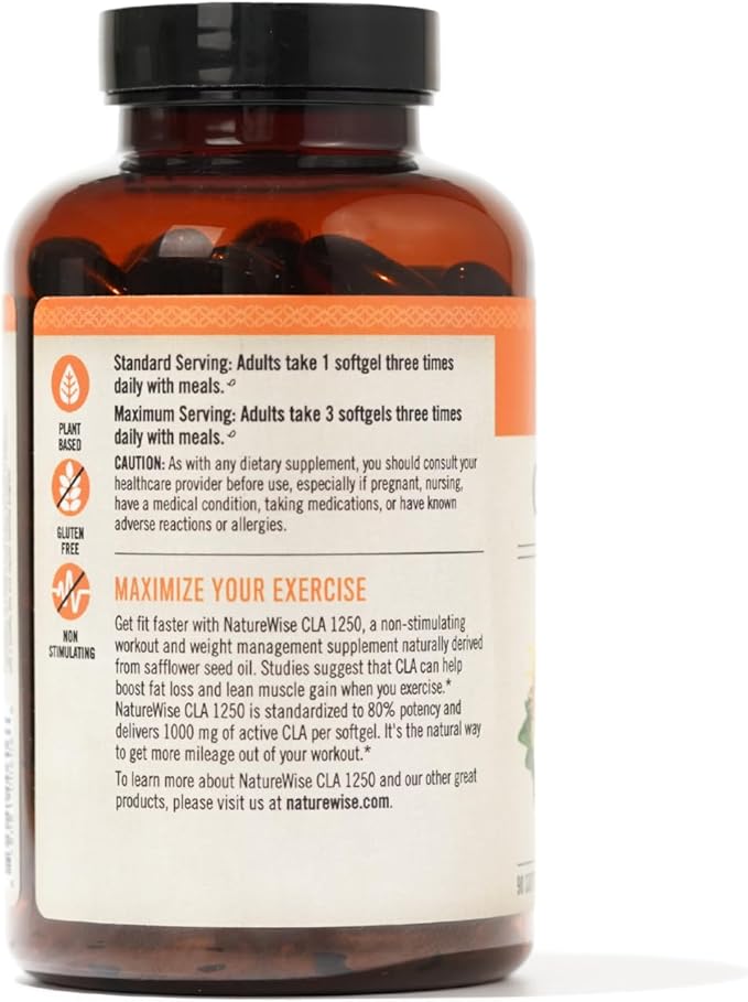 NatureWise CLA 1250 - Conjugated Linoleic Acid Supplement for Women and Men, Not Stimulating, Supports Healthy Weight, Fitness Goals - Non-GMO, Gluten Free - 90 Softgels[1-Month Supply]