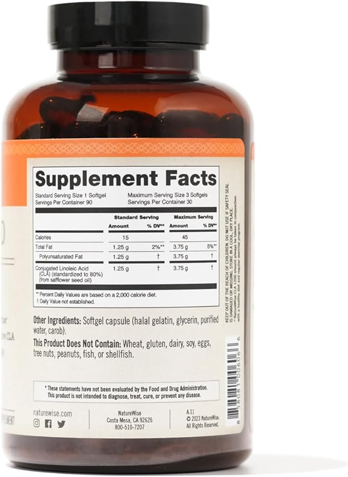 - HALAL SOFTGELS: NatureWise CLA 1250 softgels are made with Halal-certified gelatin with no gluten, no soy, and no dairy.