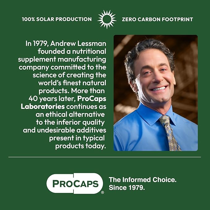 - Ethical & Eco-friendly. Zero Carbon Footprint - Uniquely committed to your health and the health of the planet, ProCaps' facilities are 100% Solar Powered with a Zero Carbon Footprint and an LEED Gold green building status. All ProCaps bottles are made from 100% recyclable post-consumer resin. Plus, Andrew Lessman and ProCaps are the largest donor of prenatal vitamins in the world (over 2 billion capsules donated to date). ProCaps, the Informed Choice for Nutritional Supplements.