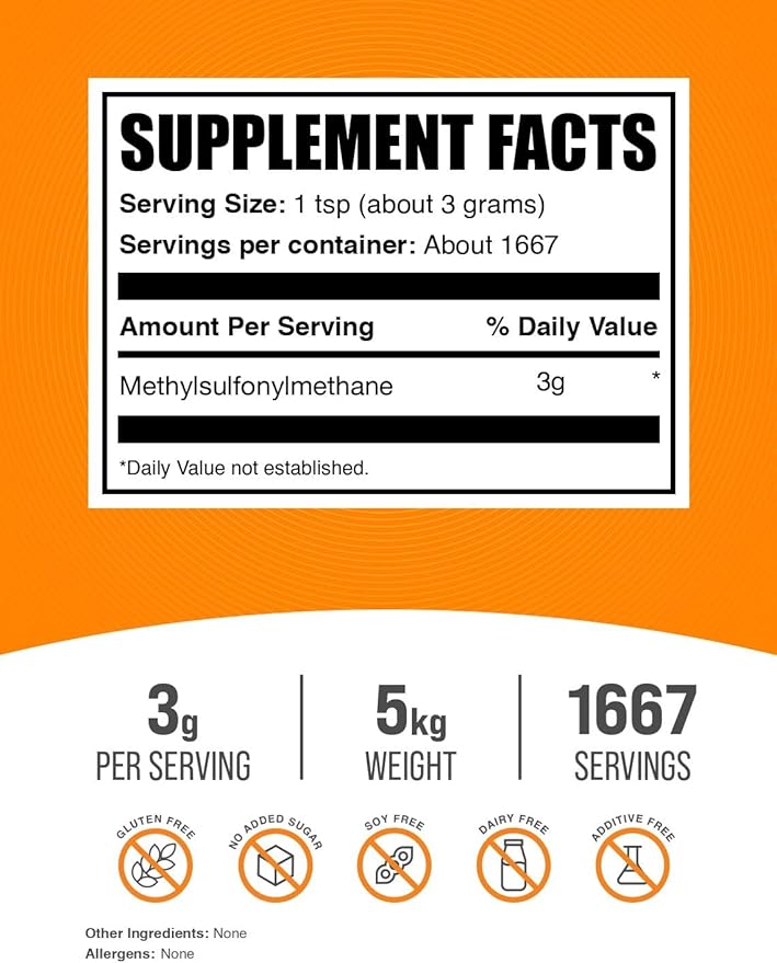 - Maximize your Potential: Enhance your active lifestyle with our MSM supplement in MSM powder, designed to support your strength and performance goals. Each serving delivers a substantial 3000mg dose, catering to both fitness enthusiasts looking to push their limits.