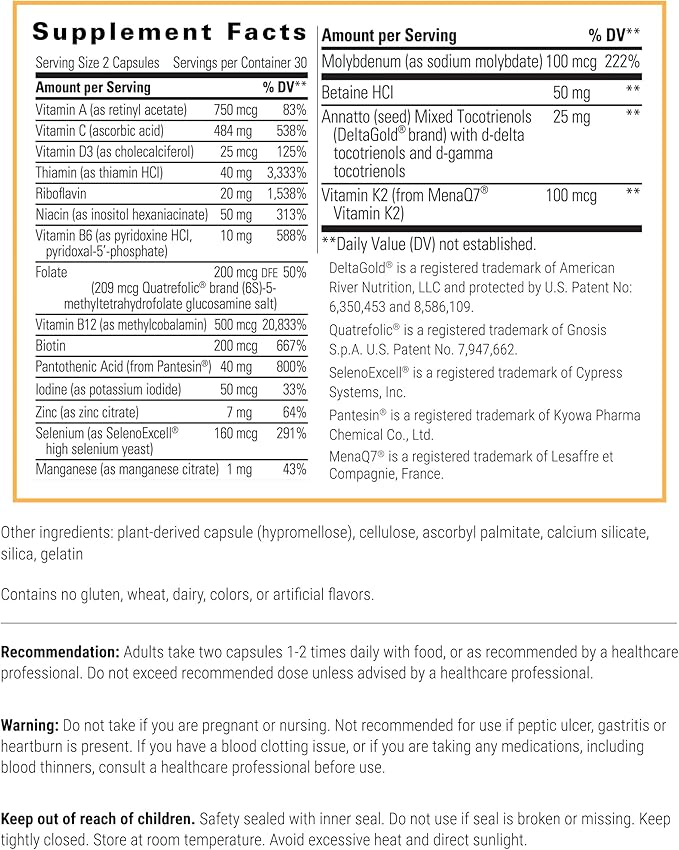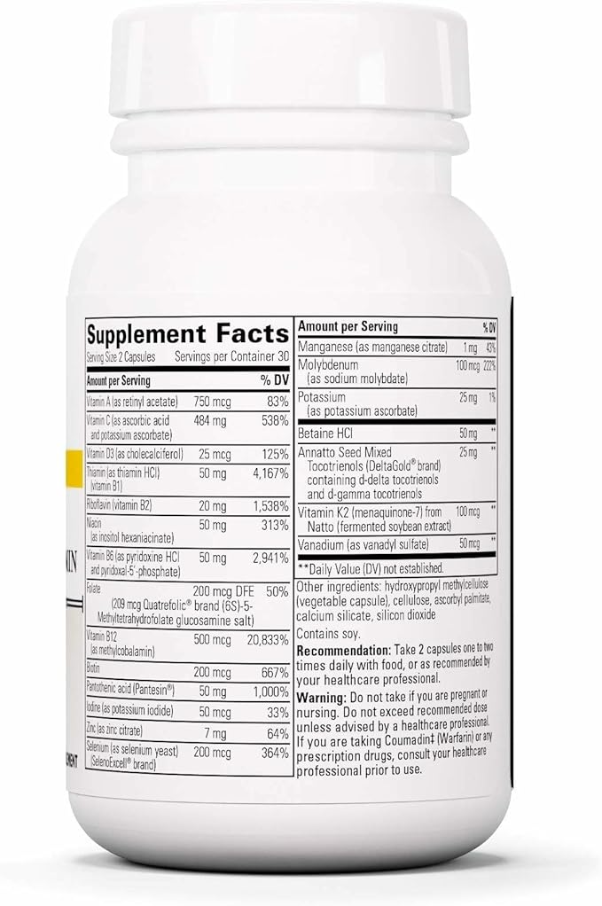 Integrative Therapeutics ProThrivers Wellness Multivitamin - Includes Vitamin A, C & B12 - Multivitamin Supplement with Included Minerals - 60 Capsules (30 Servings)
