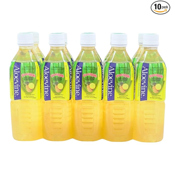- ALOEVINE DRINK: Offering a refreshing alternative to soda, is a ready-to-drink option that comes in a pack of 10 bottles, with each bottle containing 16.9 oz.