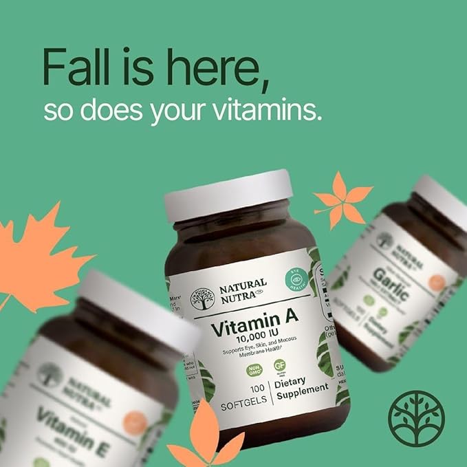 Natural Nutra Vitamin A 10,000 IU Softgels – High Potency Eye and Skin Vitamins – Gluten-Free Vitamin A Supplement for Sight & Skin Health – Fish Liver Oil for Men and Women, Gluten Free 100 Softgels