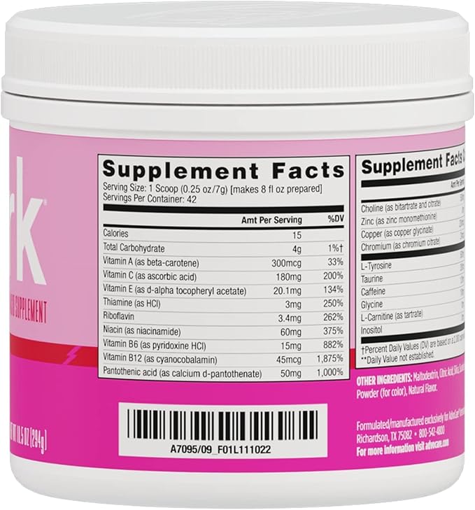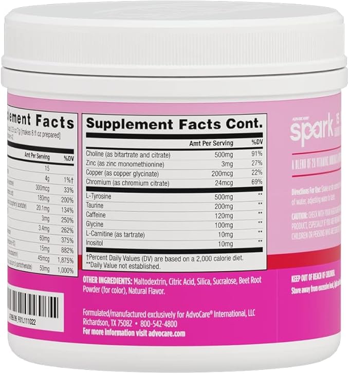 AdvoCare Spark Vitamin & Amino Acid Supplement - Focus & Energy Drink Powder Mix with Vitamin A, B-6, C & E - Also Includes L-Carnitine & L-Tyrosine - Pink Lemonade - 10.5 oz