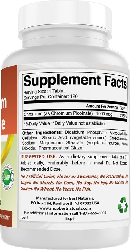 Best Naturals Chromium Picolinate 1000 mcg 120 Tablets