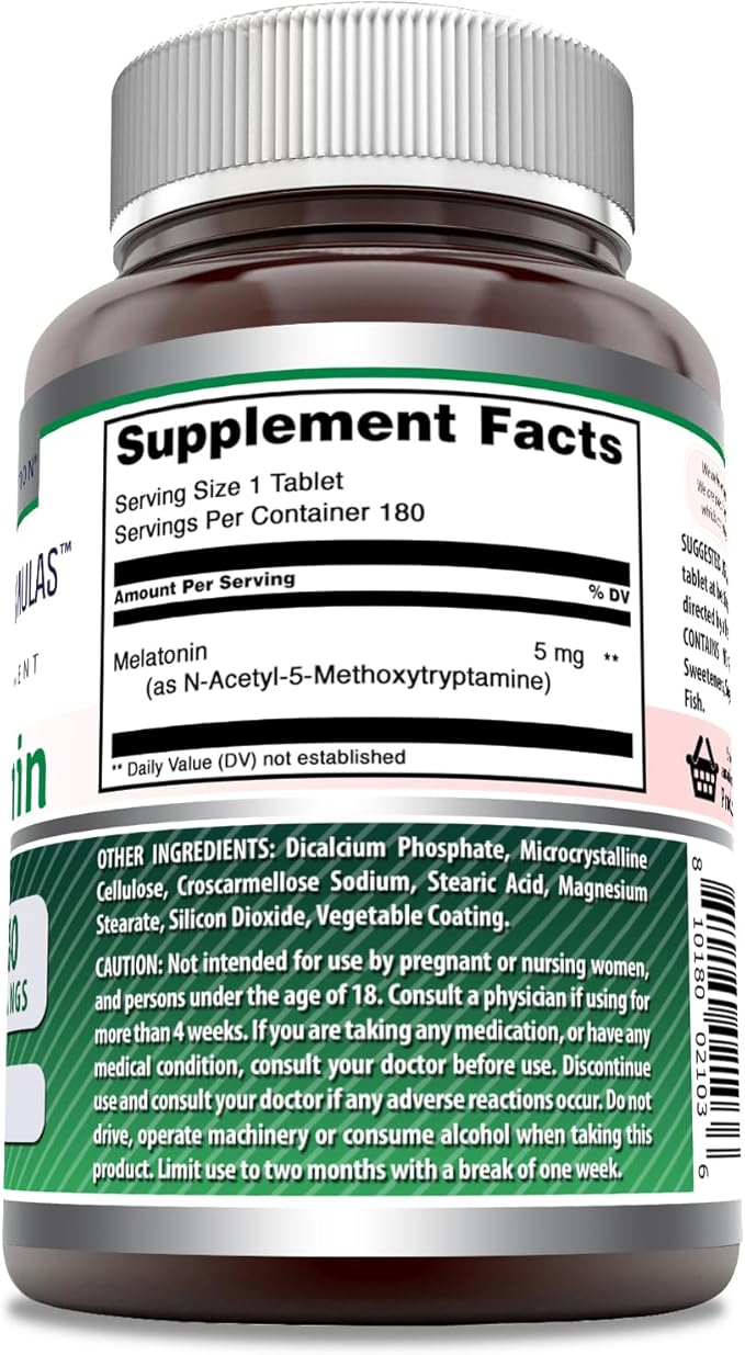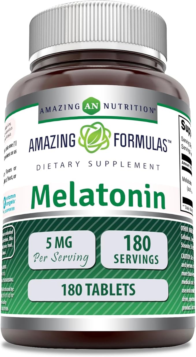 Amazing Formulas Melatonin Supplement | Unflavored | 5 Mg | 180 Tablets | Non-GMO | Gluten Free | Made in USA