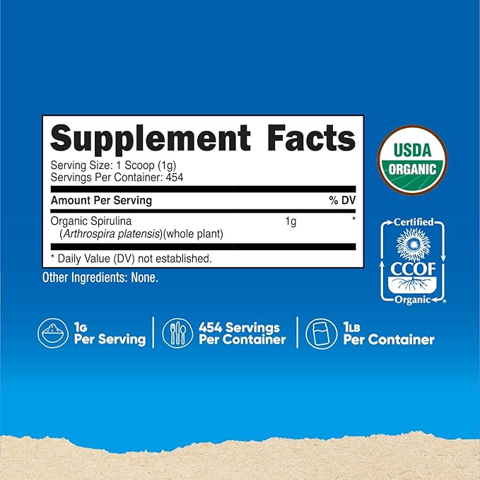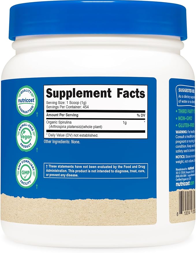 Nutricost Organic Spirulina Powder 454 Grams, 1LB - Pure, Certified Organic Spirulina