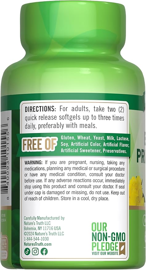 Nature's Truth Evening Primrose Oil Softgels | Cold Pressed | Non-GMO & Gluten Free Supplement